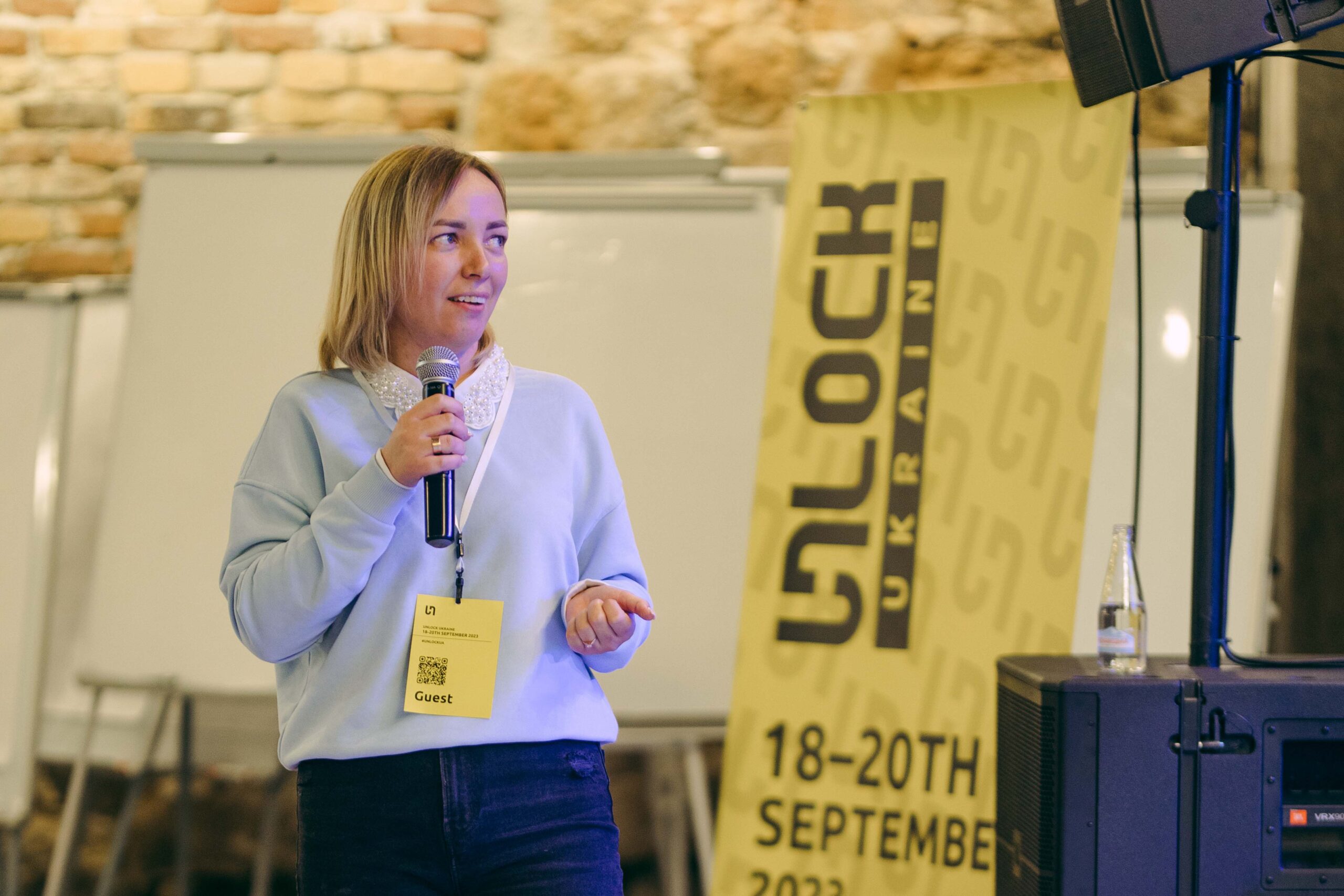 «На Unlock Ukraine ми приїхали командою для того, щоб отримати нові знайомства з міжнародними партнерами, з українськими партнерами, які зможуть допомагати нам фінансово відбудовувати нашу громаду. Обмінятися досвідом набутим нашою громадську організацію, отримати досвід інших громадських організацій, які вже досить ефективно реалізовували проєкти. Тут мене змотивувало і зарядило позитивом оточення, яке навколо мене. Я помітила, що громадські організації очолюють дуже багато молоді, які активні, креативні та позитивні».
